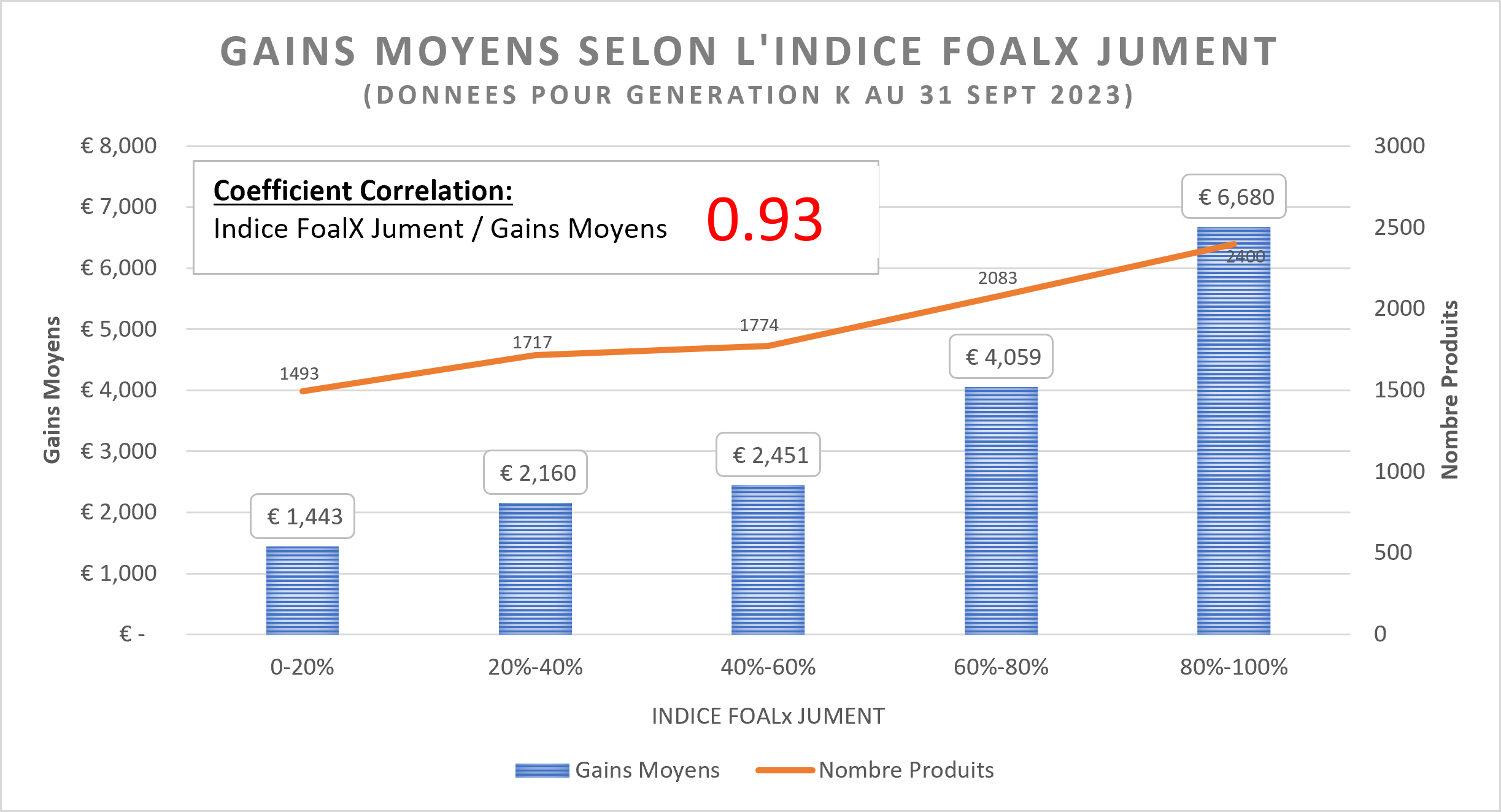 Nous avons calculé pour chaque jument un INDICE FOALX JUMENT, qui est dérivé du BTR avec la logique expliquée dans la vidéo suivante.